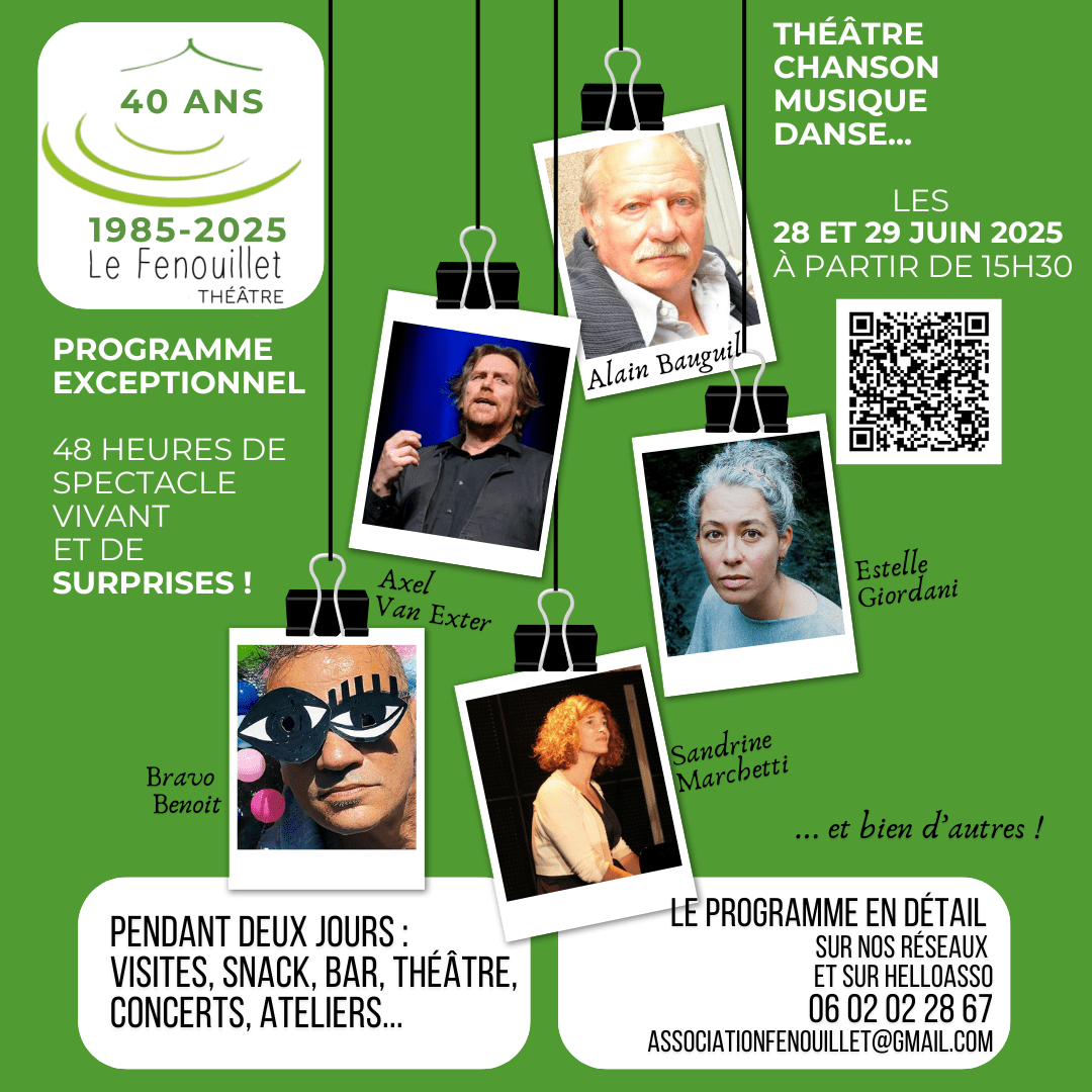 Fêter les 40 ans du Fenouillet, c’est bien plus que célébrer une date. C’est affirmer qu’il est possible, aujourd’hui encore, de faire vivre la culture dans un esprit d’ouverture, de proximité, de générosité. C’est remercier toutes celles et ceux qui ont contribué à cette aventure — artistes, bénévoles, partenaires, publics — et inviter chacun·e à écrire avec nous les prochaines pages.
